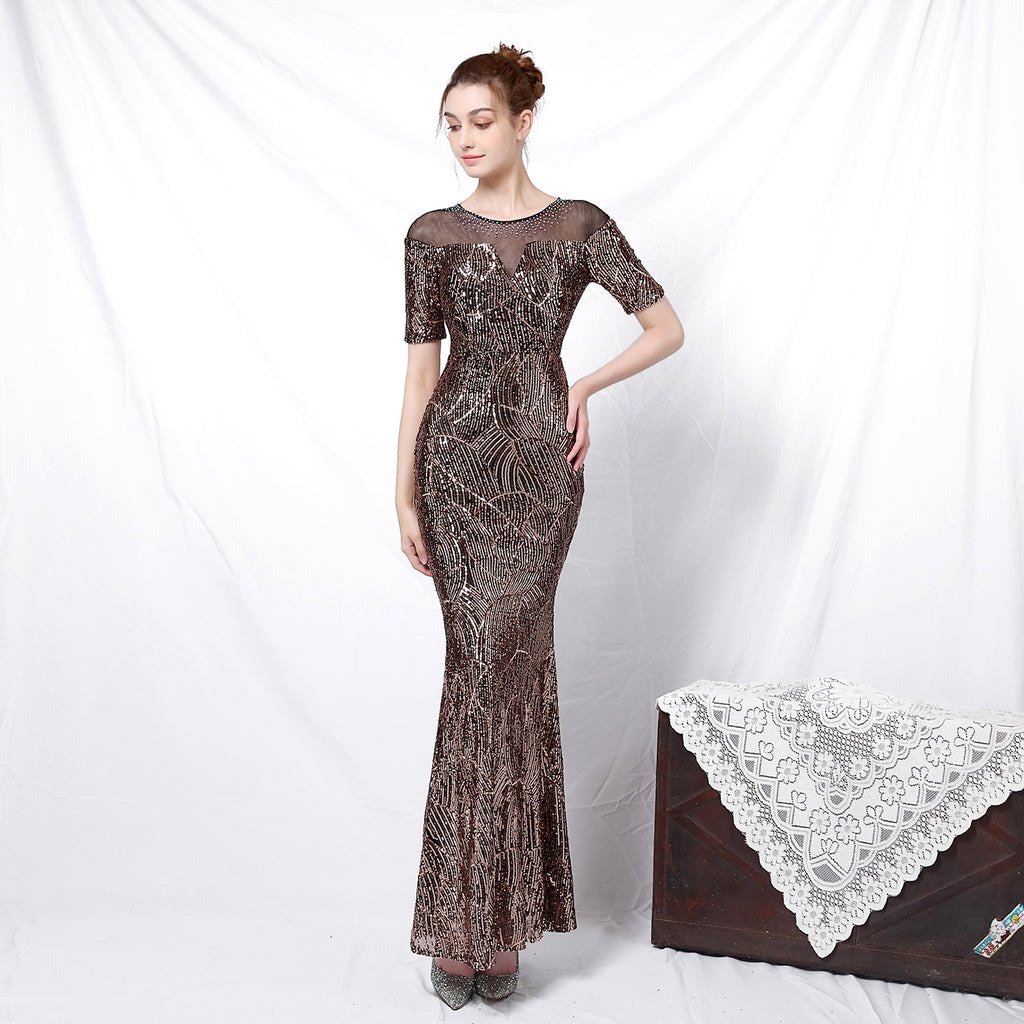 Elegant 3/4 Sleeve Sequin Mermaid Gown for a Daring Look