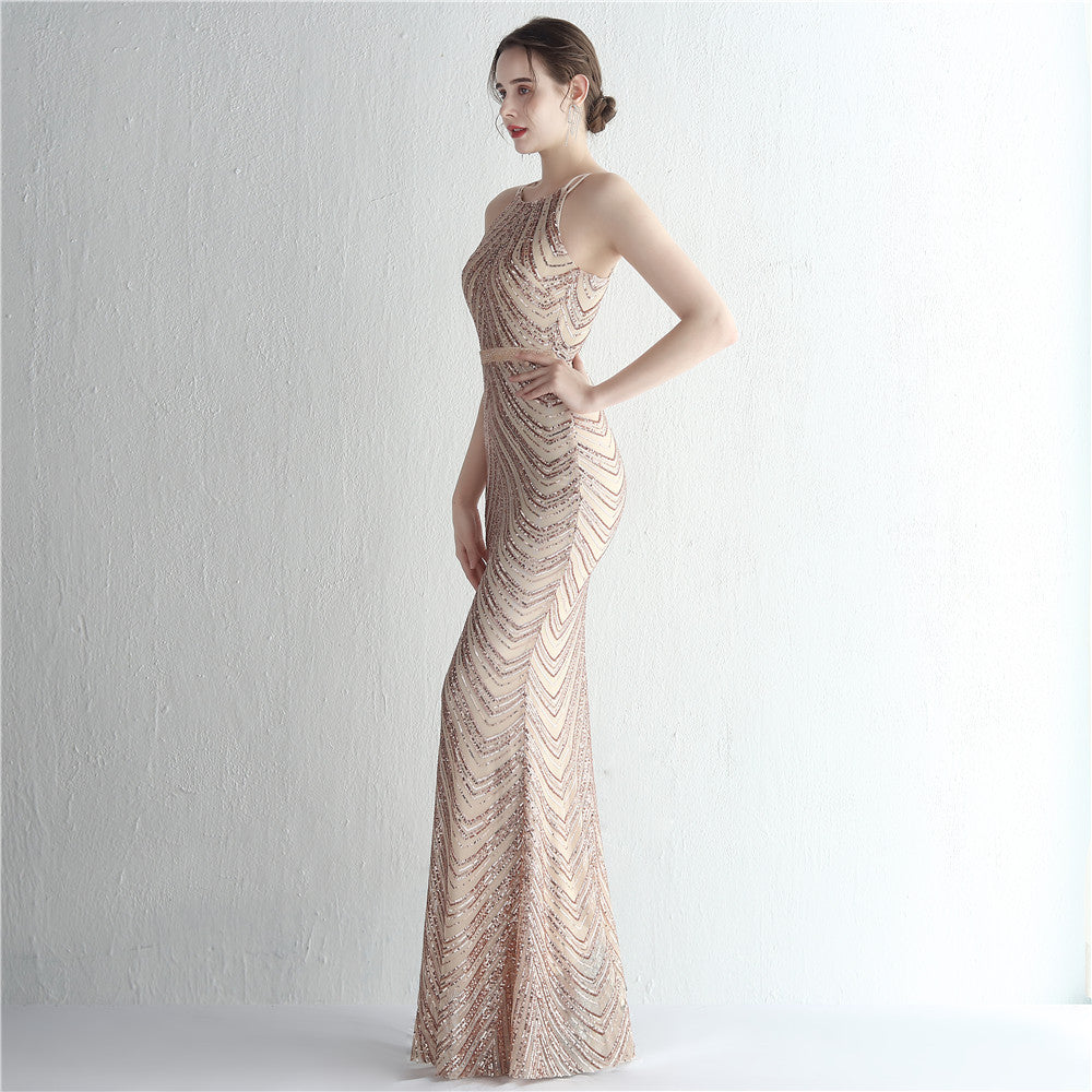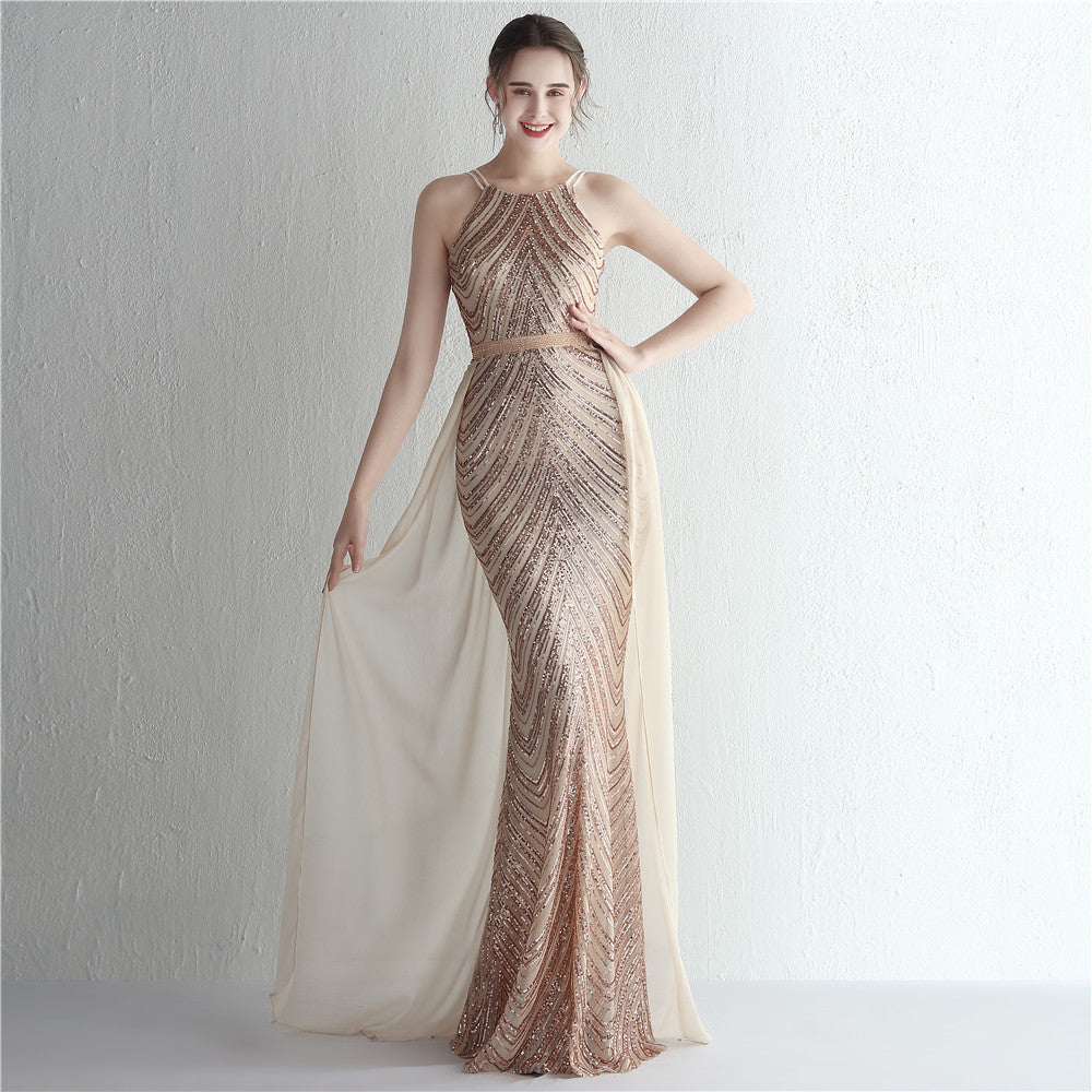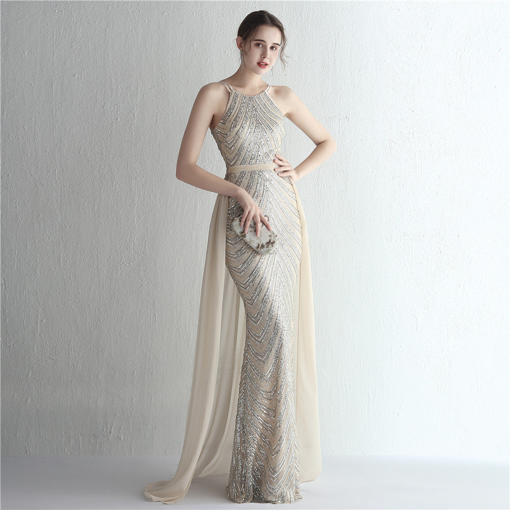 Halter-Neck Chiffon Gown with Floral Sequins & Beading