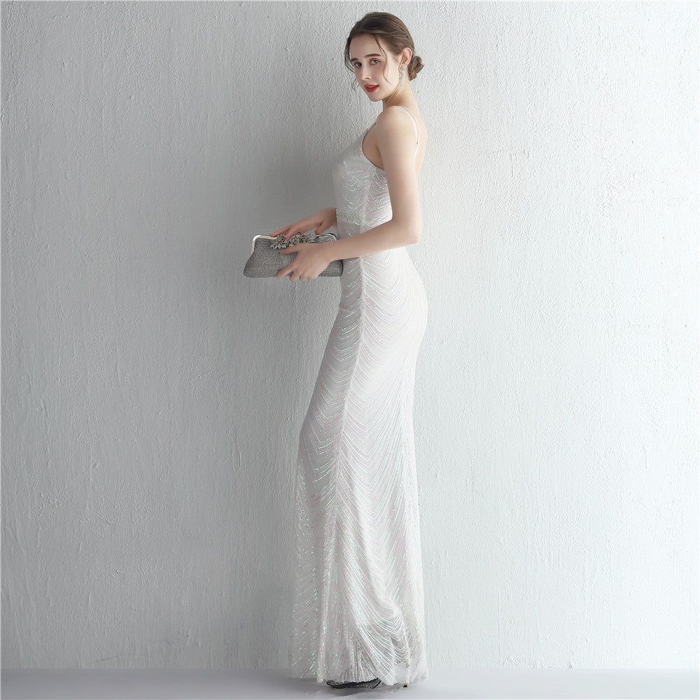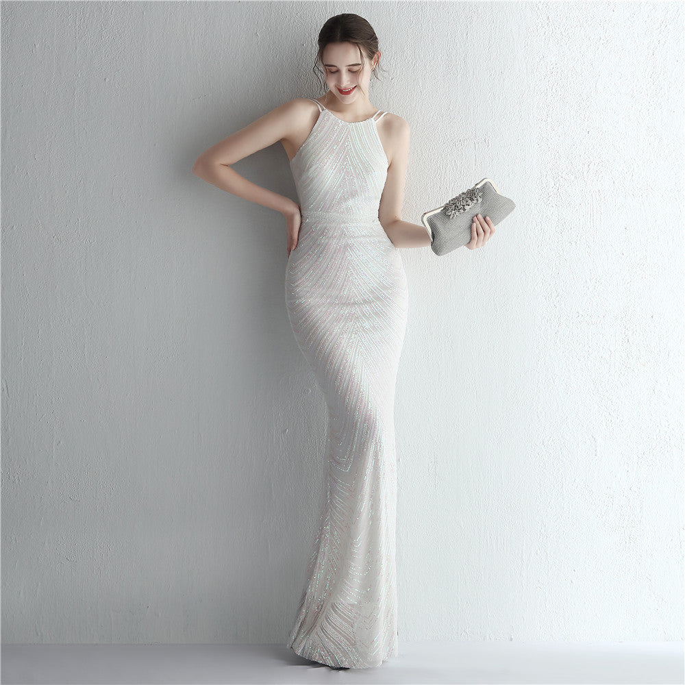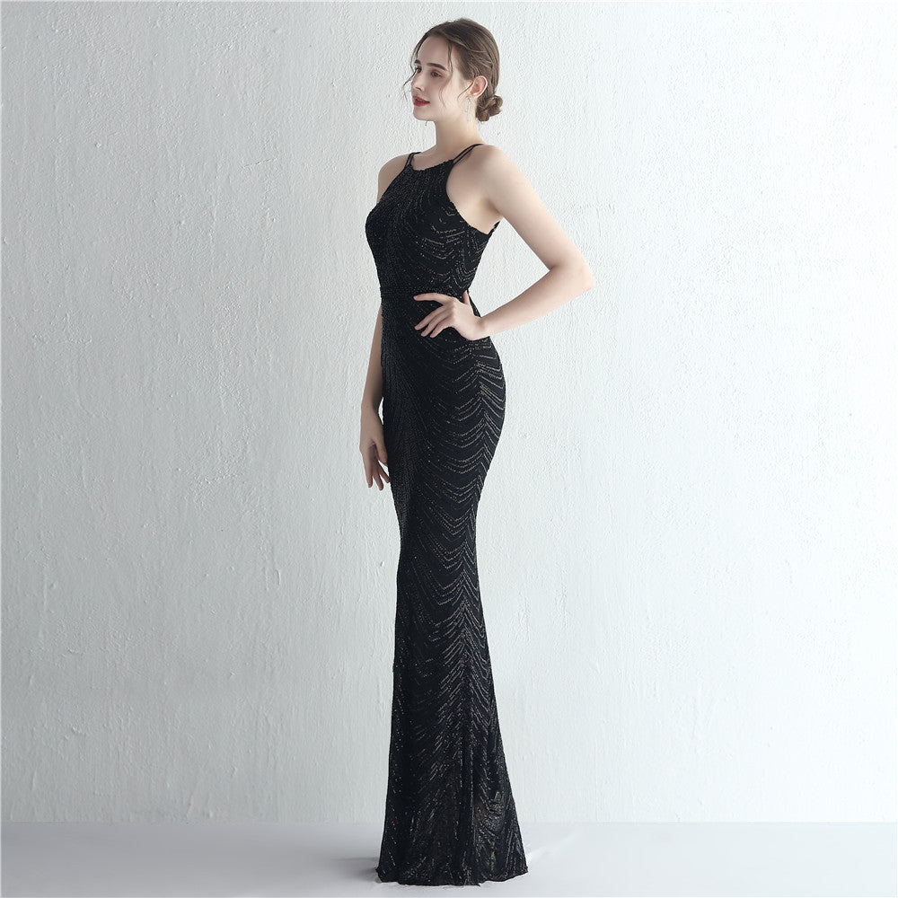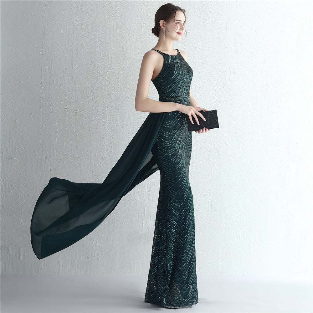 Halter-Neck Chiffon Gown with Floral Sequins & Beading