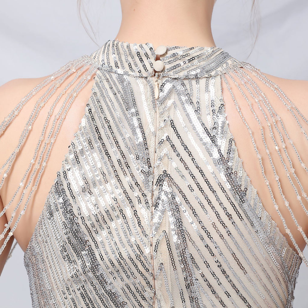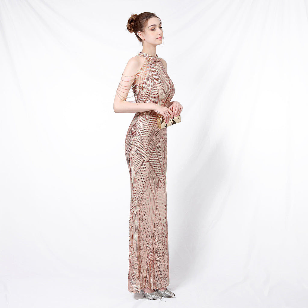 Halter-Neck Sequin Mermaid Gown for a Daring Look
