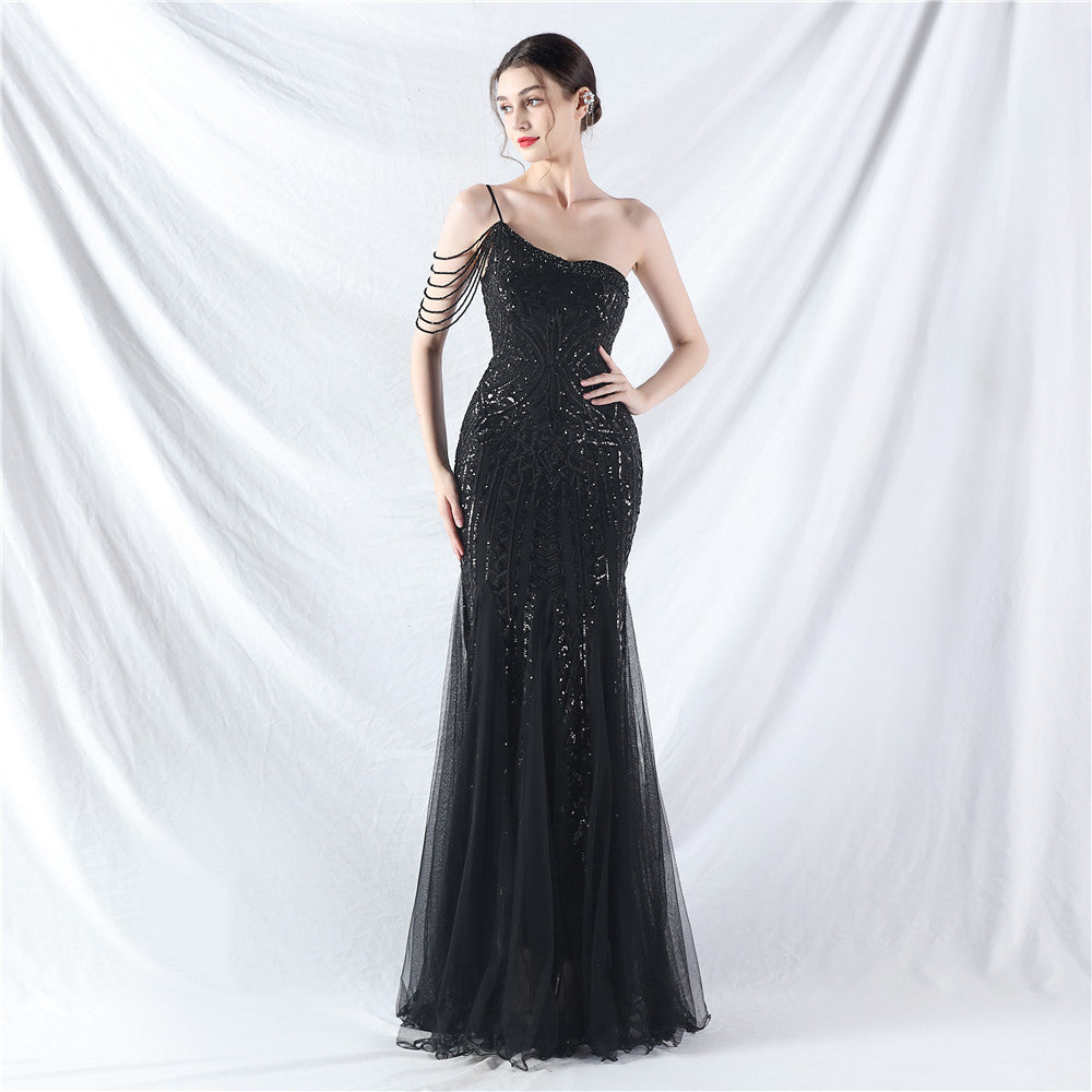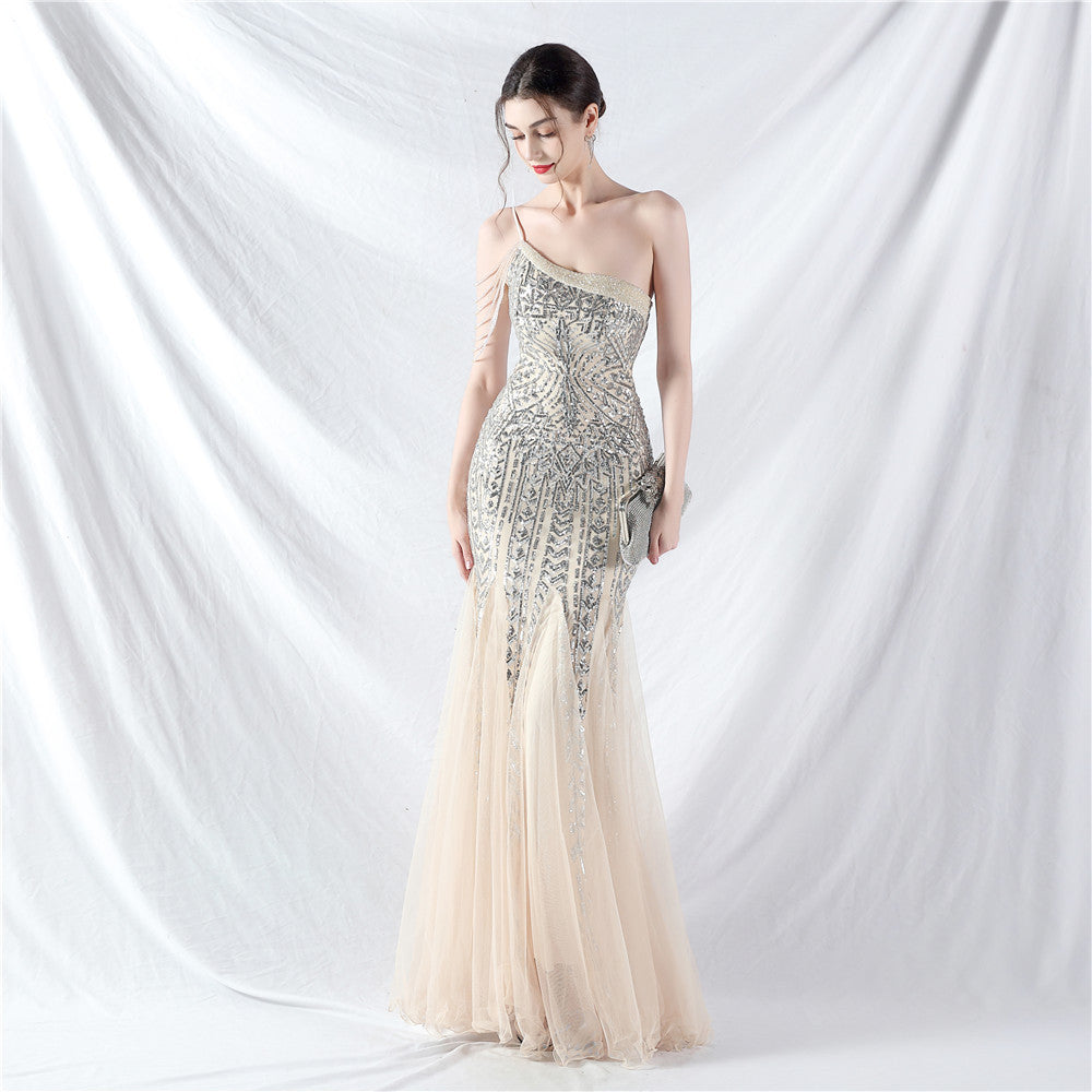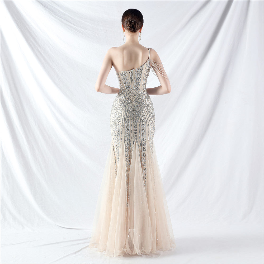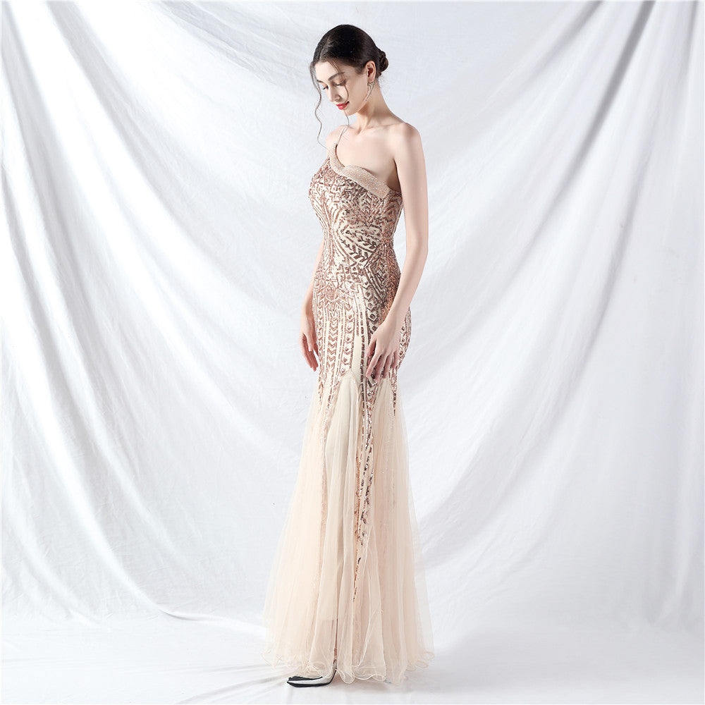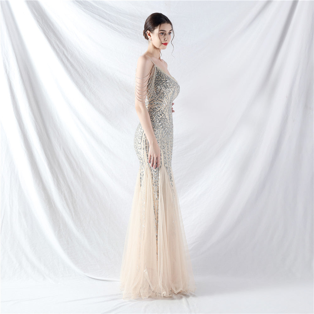 High-End Sequin & Tulle Gown with Floral Beadwork