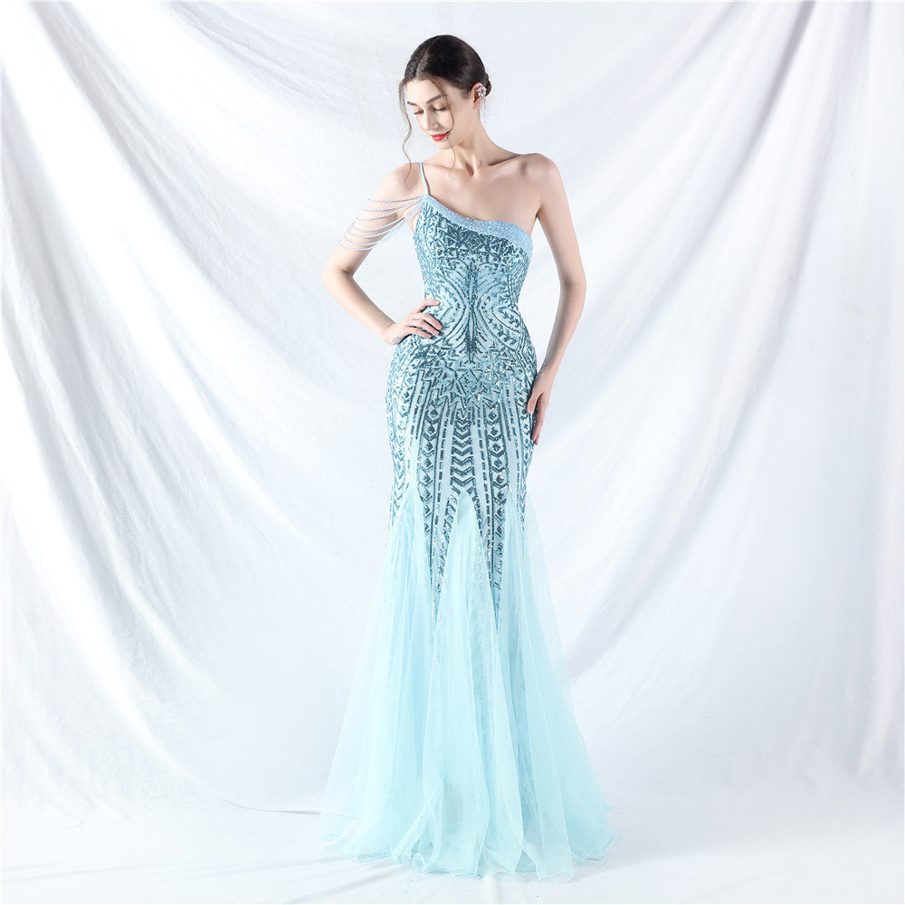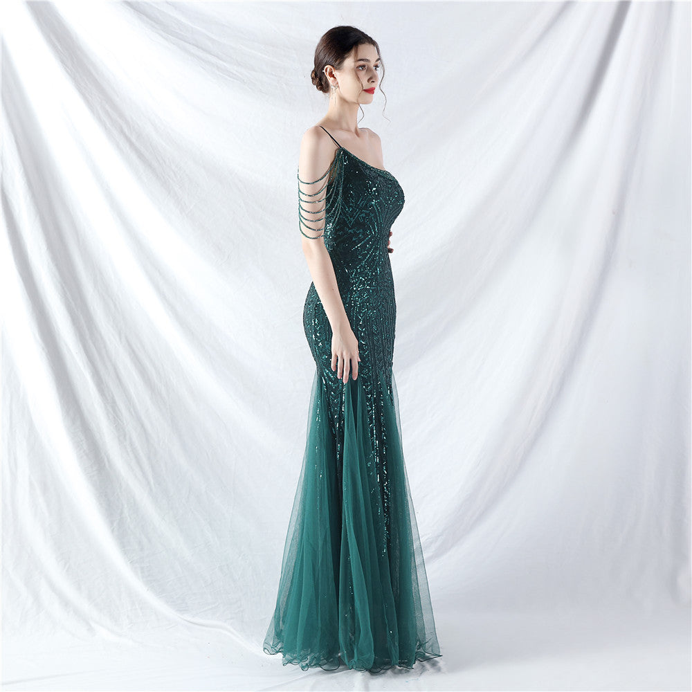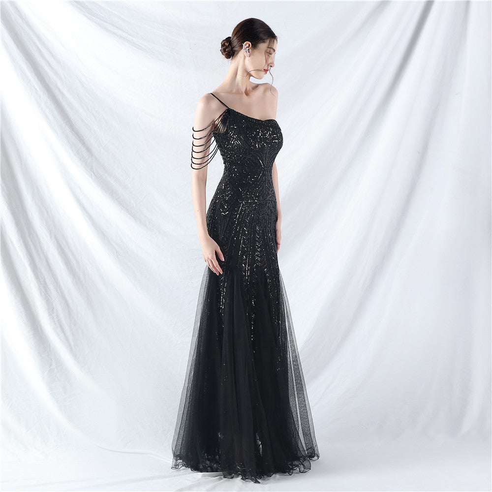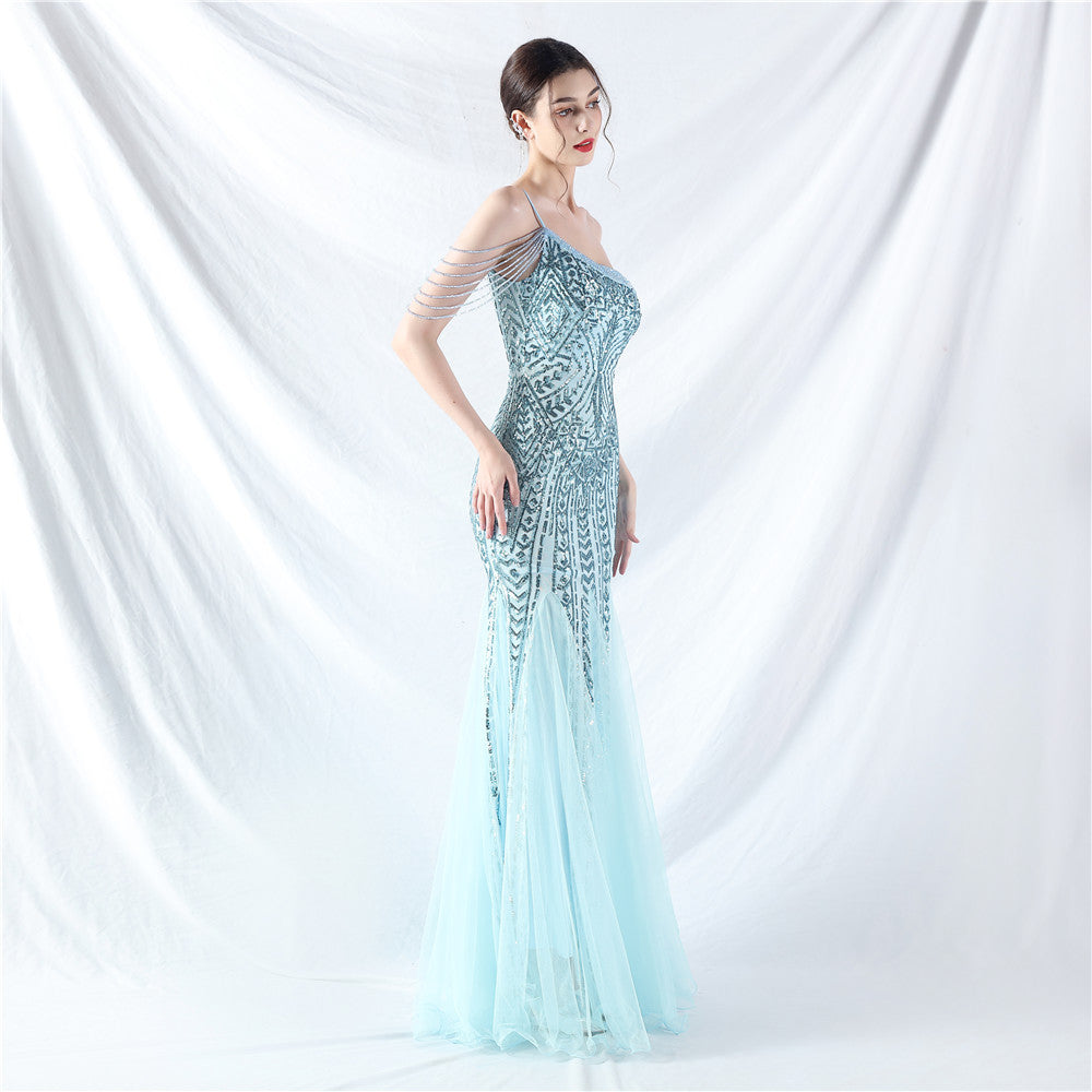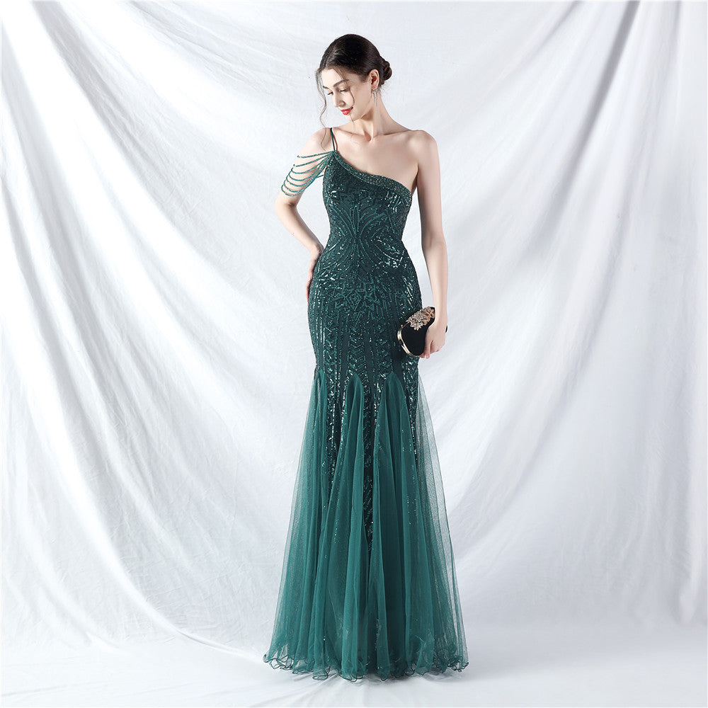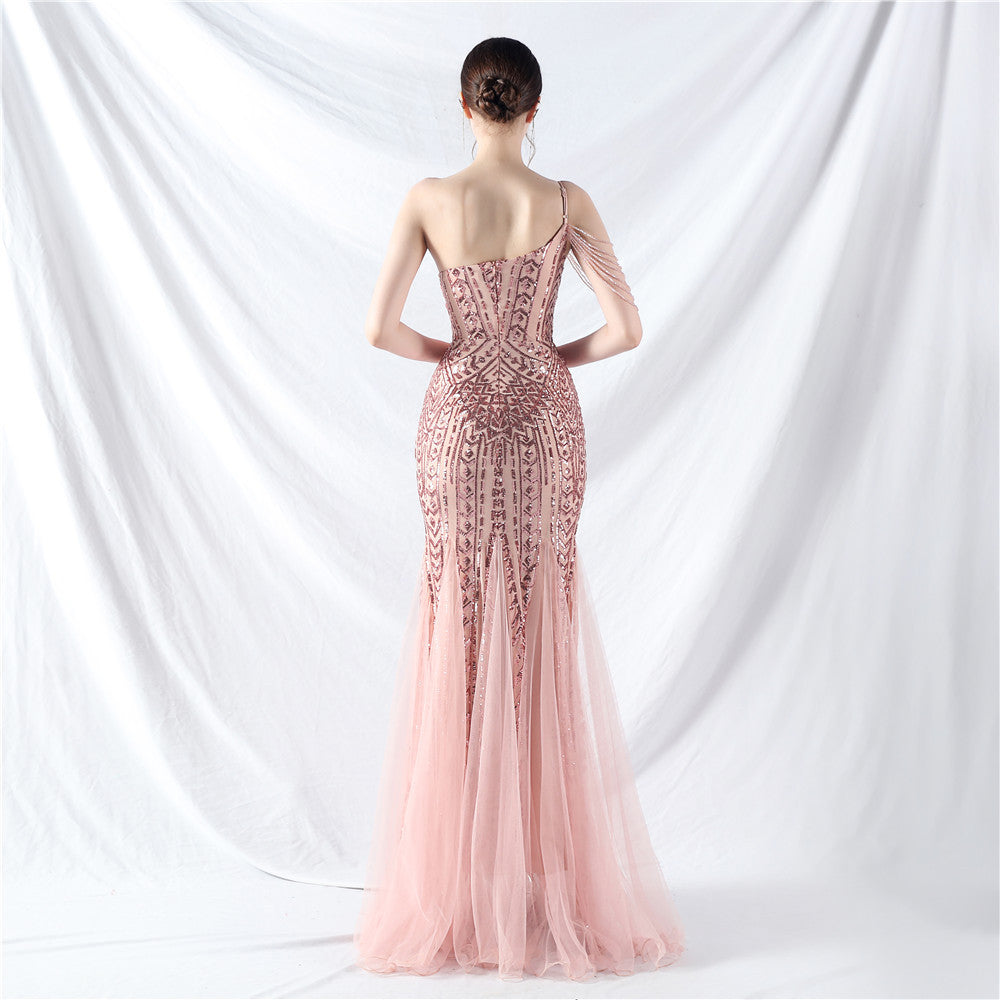 High-End Sequin & Tulle Gown with Floral Beadwork