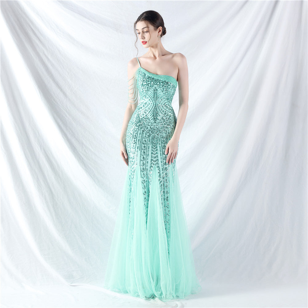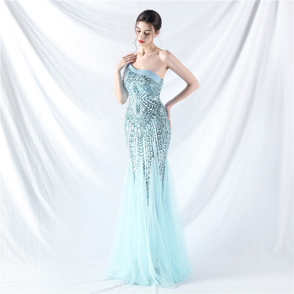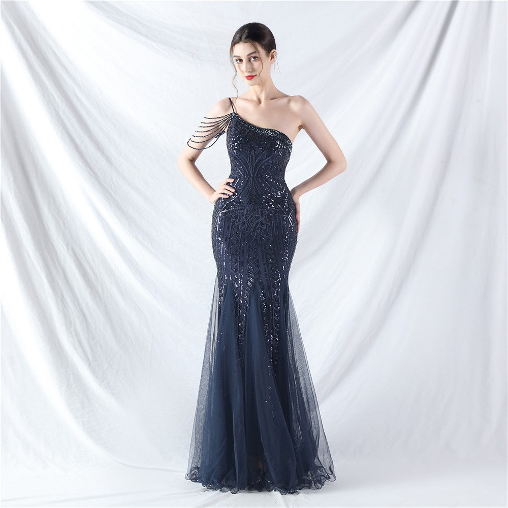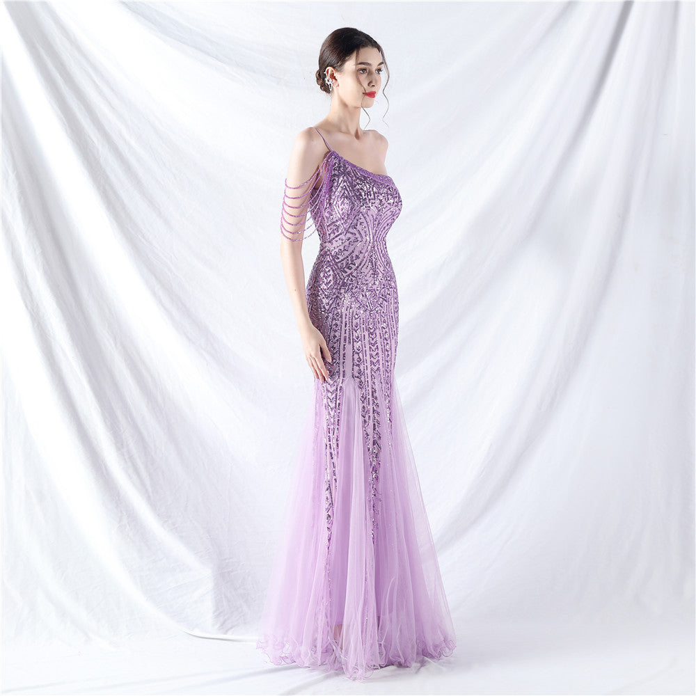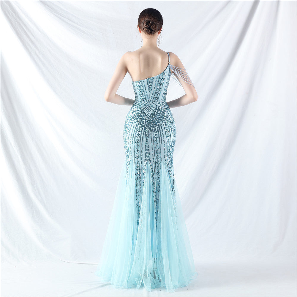 High-End Sequin & Tulle Gown with Floral Beadwork
