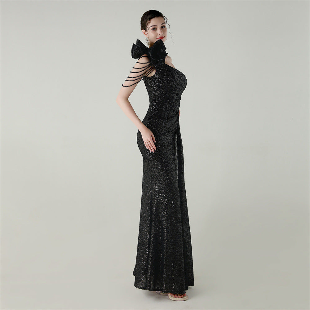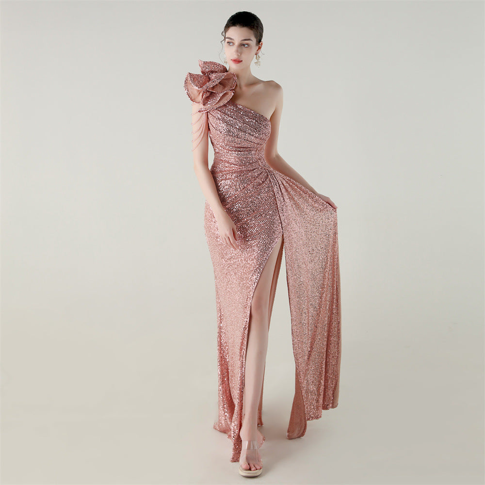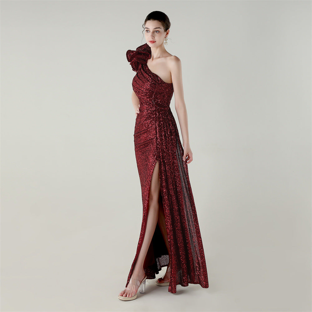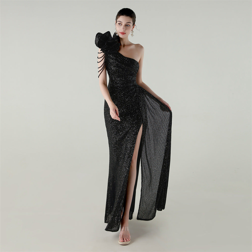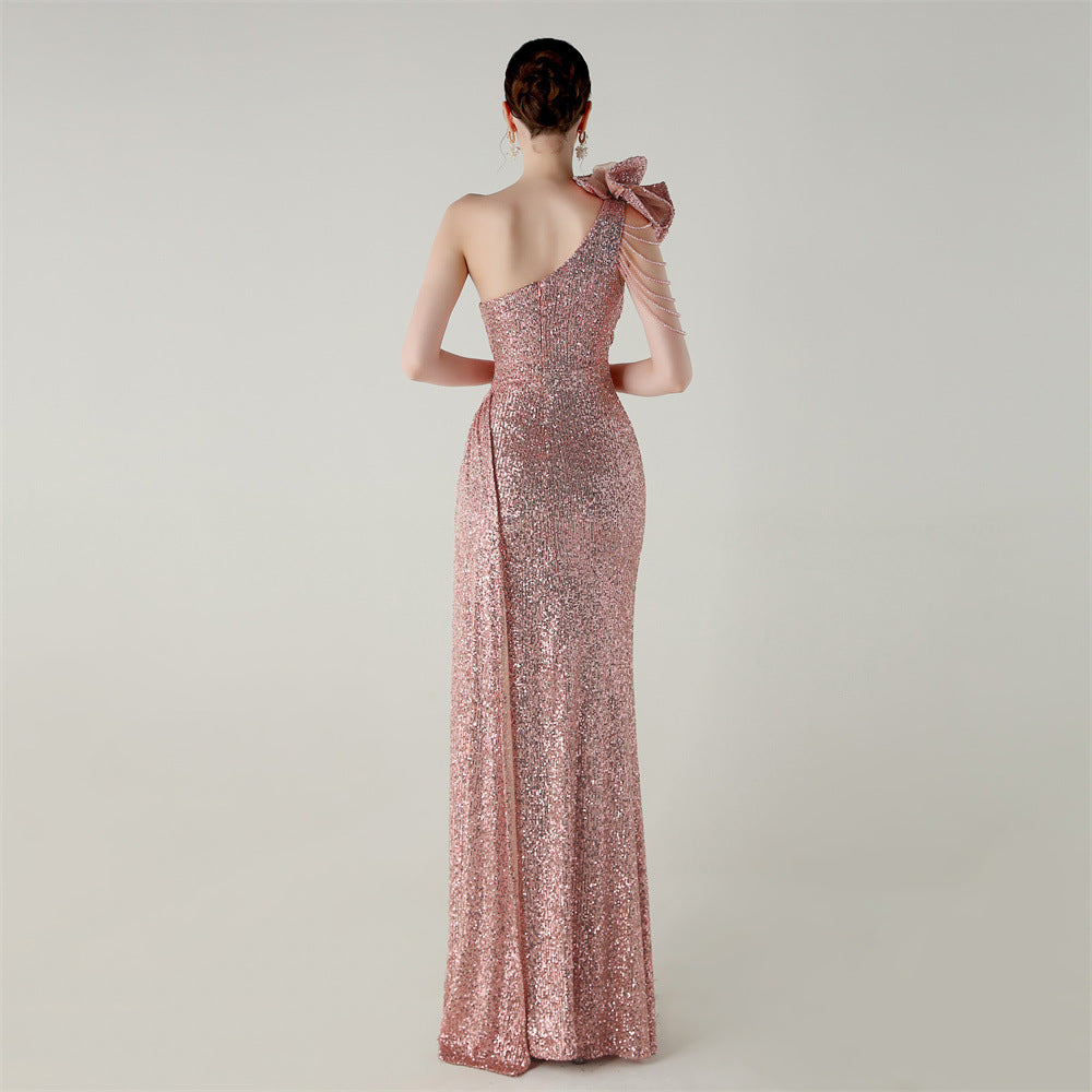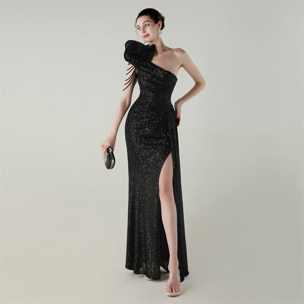 One-Shoulder Asymmetric Mermaid Gown with Floral Beadwork
