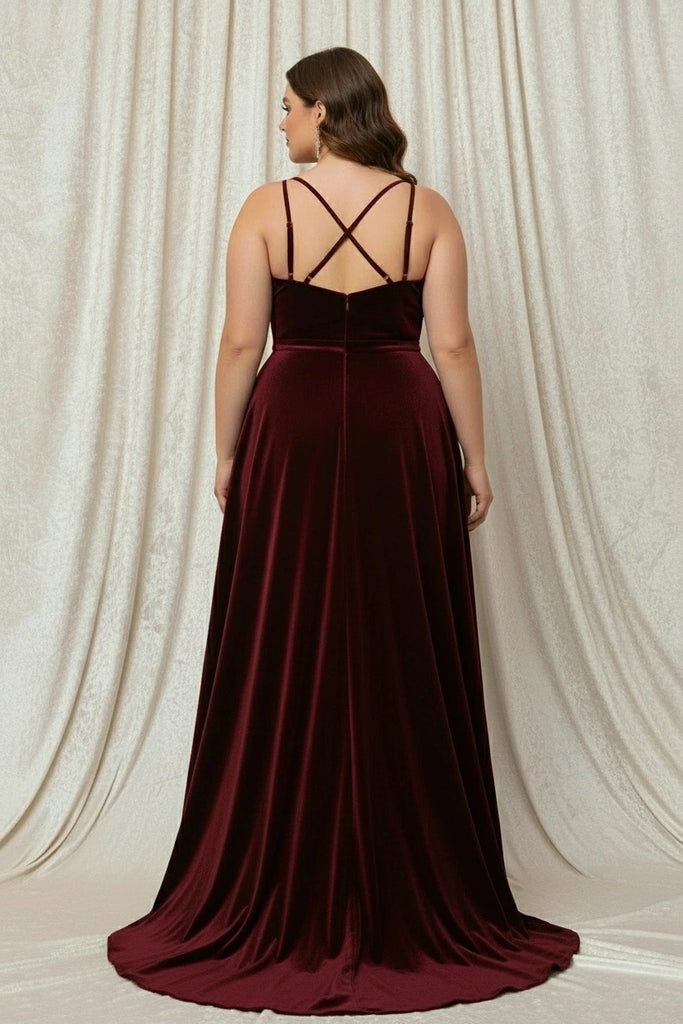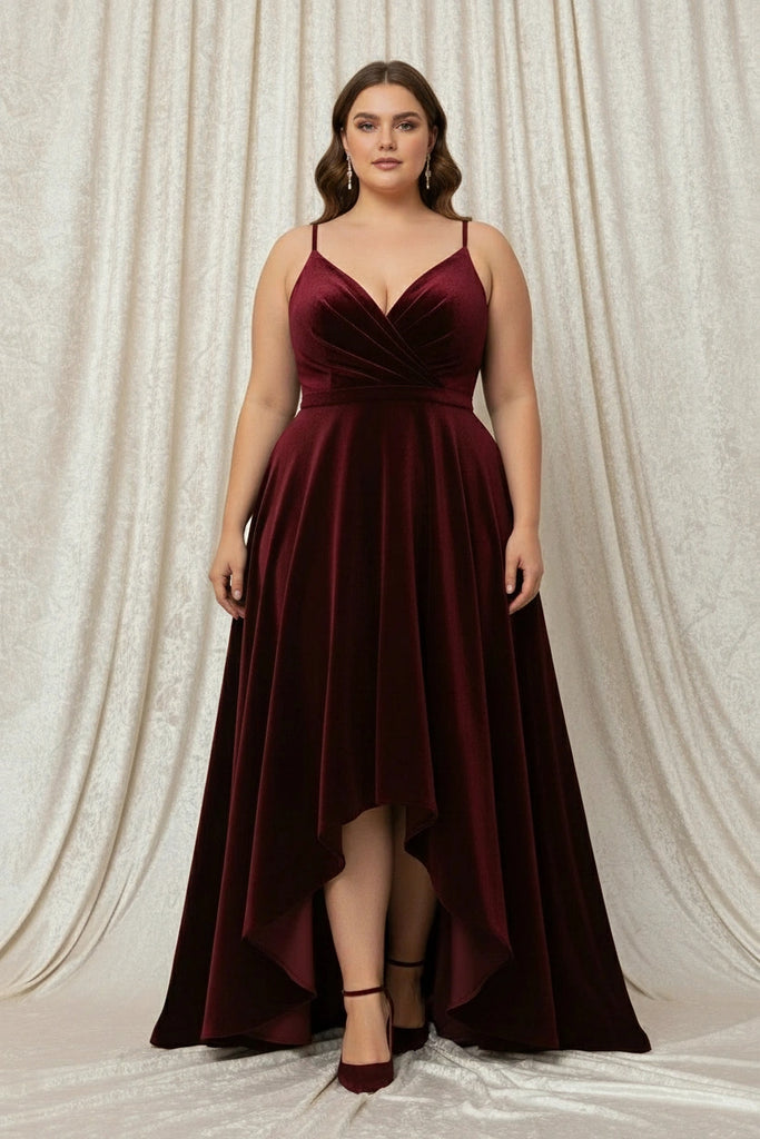 Spaghetti Straps V-Neck Velvet High-low A-line Dress