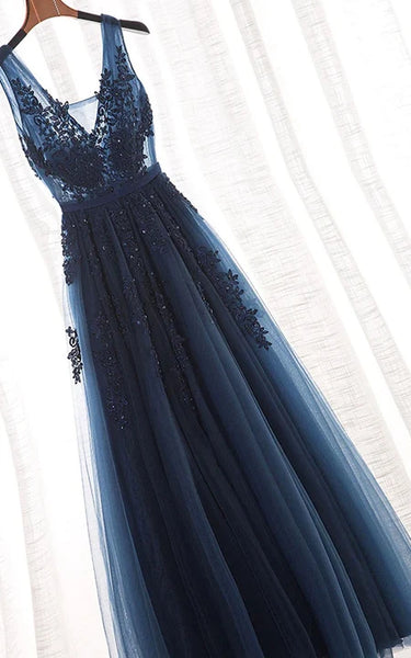 Dark Navy Empire sin mangas plisado Tulle Tulle Prom | Vestido de dama de honor