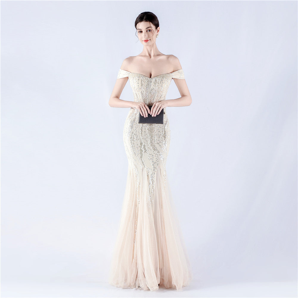 Embellished Sequin & Tulle Evening Gown for Galas & Performances